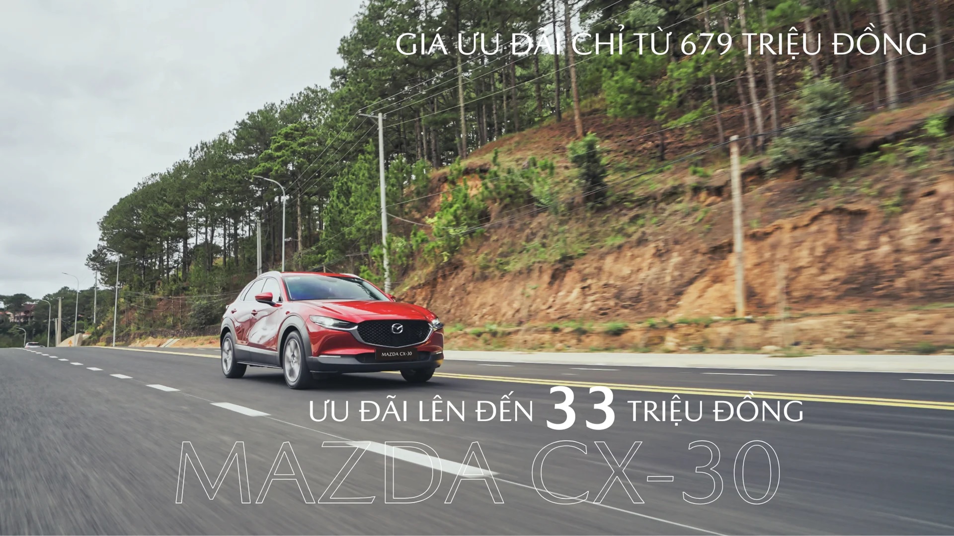 Mazda CX-30 là lựa chọn phù hợp cho khách hàng trẻ và gia đình nhỏ theo đuổi phong cách sống hiện đại. Kiểu dáng gọn gàng, thời trang kết hợp không gian sử dụng linh hoạt cùng cảm giác lái mượt mà giúp CX-30 đáp ứng tốt cả nhu cầu đi làm hằng ngày lẫn những chuyến đi ngắn cuối tuần. Mẫu xe đang được ưu đãi đến 33 triệu đồngvới mức giá từ 679 triệu đồng.