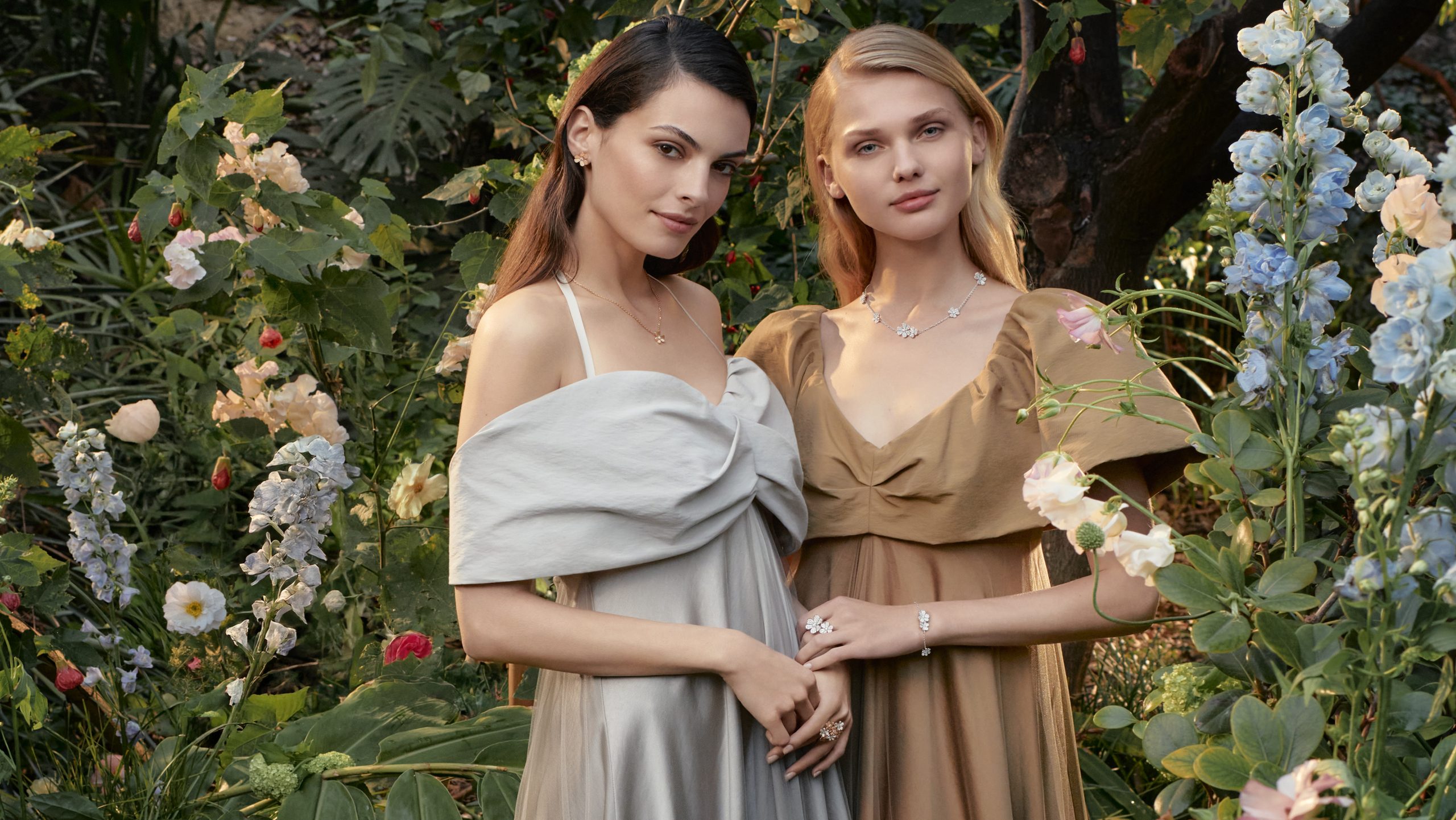 Từ kỹ nghệ đúc mẫu chảy đến kỹ thuật ghép đôi “tête-à-tête”, mọi quy trình tại Van Cleef & Arpels đều hướng đến một triết ly: bắt trọn nhịp sống của thiên nhiên. Những cánh hoa được uốn cong tạo khối đa chiều, cộng hưởng cùng kỹ thuật đính kết kim cương tinh xảo. Kết quả, mỗi đóa hoa như đang bừng sáng dưới nắng mặt trời. Với đầy đủ từ vòng cổ đến khuyên tai, bộ sưu tập Flowerlace còn gây ấn tượng mạnh bởi chiếc nhẫn Between the Finger, một thiết kế đai hở duyên dáng để hai đóa hoa đối xứng tự do bung nở trên đôi tay.