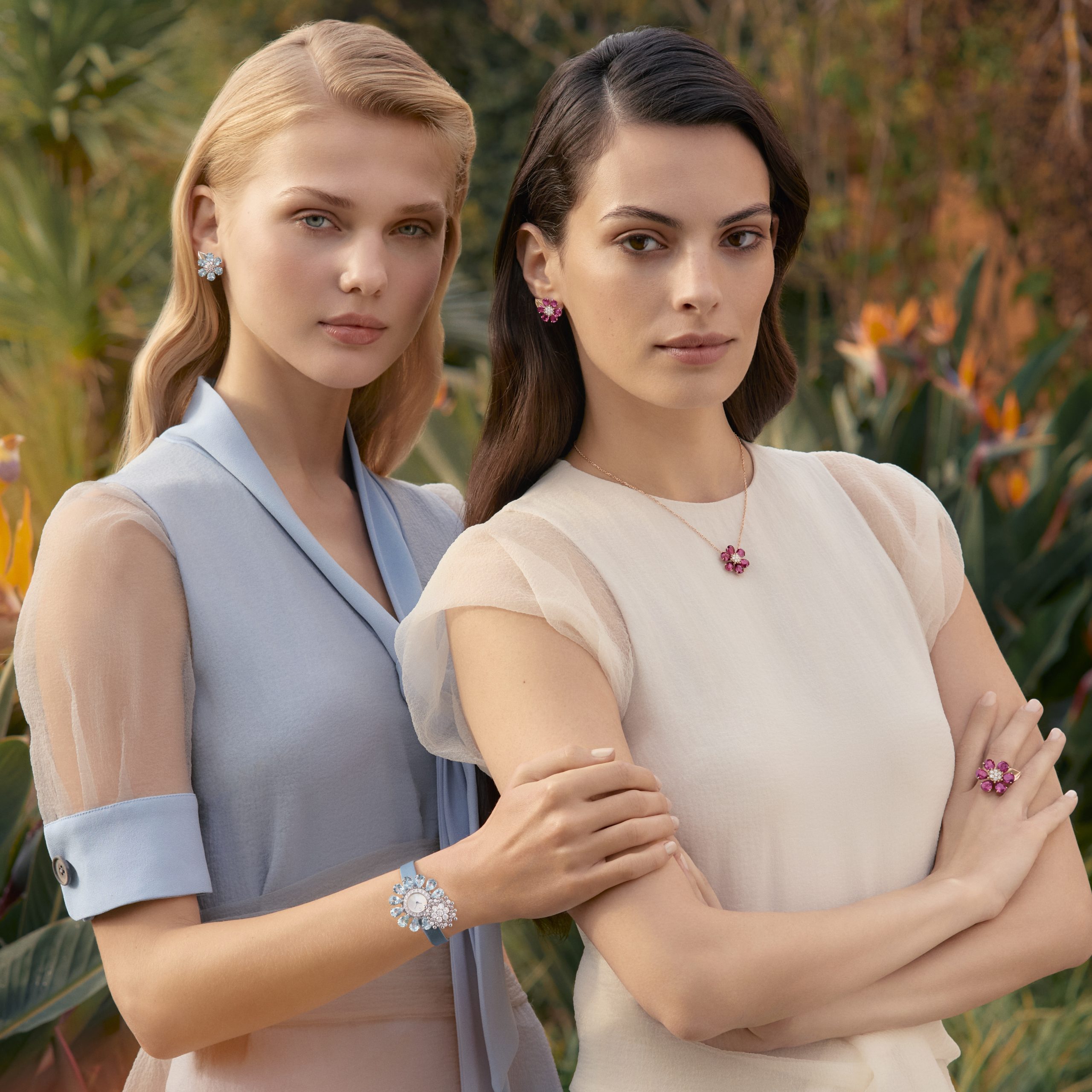 Nhắc đến Fleurs d’Hawaï là nhắc đến vũ điệu của những viên đá cắt dạng lê, được xếp đặt ôm trọn nhụy hoa kết từ bảy viên kim cương. Mỗi đóa hoa như đang lay động trong gió, bắt trọn từng tia sáng lướt qua. Hơn nữa, ở các tạo tác đồng hồ, Maison cũng giới thiệu ba thiết kế đồng hồ bí mật, với 12 đóa hoa đá quý rực rỡ vây quanh mặt số ngọc trai trắng, với điểm nhấn là viên kim cương hình quả lê tỏa sáng tại vị trí 12 giờ được giấu phía sau một họa tiết xoay lấp lánh. Bông hoa có thể tách ra khi cần và đeo như vòng tay, kẹp, hoặc mặt dây chuyền.